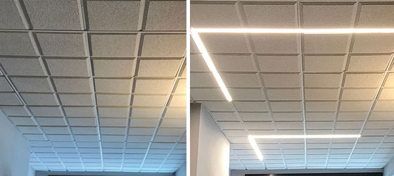 Airelight™ Linear SC 0.5 Attached with Magnets to the T-Bar Grid.