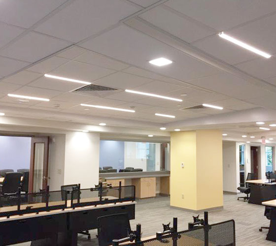 Attach Airelight Linear SC luminaires directly to T-Bar Grid to provide light wherever light is needed. This featured installation demonstrates both singular Airelight Linear luminaires, for 2′ of linear lighting, as well as coupled Airelight Linear luminaires, for 4′. The Airelight Linear SC luminaires are held in place with integrated magnets rendering them easily moveable and allowing for redesign at any point.