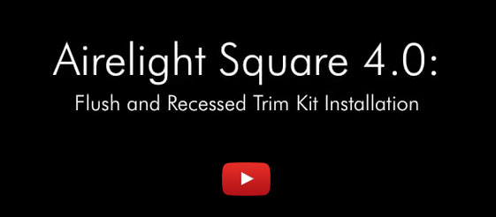 Airelight Square 4.0 Trim Kits come in different styles, all designed for easy installation. Both Flush and Recessed Trim Kits are available in Black or White, while the Mud-In Trim Kit is offered in White.