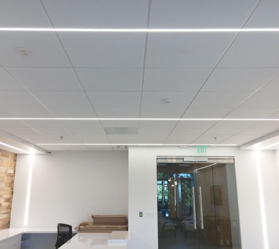 The clean and straightforward design of Airelight™ Linear SC luminaires makes them the perfect fit for this modern office environment. For LEED-certified buildings, Airelight™ Linear SC luminaires are unmatched as they are the only truly eco-friendly lighting solutions available. These LED luminaires directly attach to the T-Bar grid, fitting seamlessly between ceiling tiles. Secured by integrated magnets, the luminaires are easily adjustable, allowing for future redesigns. This flexibility offers unparalleled design versatility, enabling various configurations by installing individual luminaires or linking them end to end.