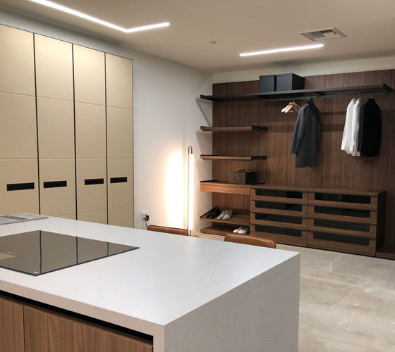 Aran Cucine, known as the largest manufacturer of Italian kitchen cabinets, selected Airelight™ Luminaires for its Pacific Design Center showroom. Aran Cucine is recognized for combining functionality with environmental responsibility, making Airelight™ Luminaires an ideal match for their showroom. Airelight™ offers a sleek and modern design that aligns with Aran Cucine’s commitment to sustainable practices, as their luminaires are free of plastics and harmful materials.