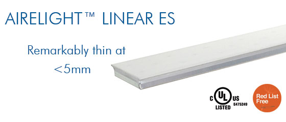 Airelight™ Linear ES Luminaires offer a range of features to fit different design and lighting needs. Available in multiple lengths, including 6, 12, 18, and 24 inches, these luminaires provide flexibility for a variety of lighting configurations. Despite their ultra-thin design at under 5mm thick, they deliver up to 770 lumens per foot, making them highly efficient for both ambient and task lighting. The luminaires are also fully dimmable, allowing control over brightness levels, and they come in four color temperature options: 2700K, 3000K, 3500K, and 4000K, providing versatility to suit the space.
