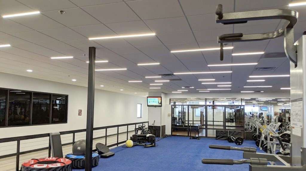 One key feature of the Airelight™ Linear SC 0.5 Luminaires is their ability to attach directly to the T-Bar grid ceiling. This installation method eliminates the need for complex modifications, saving time and effort during setup. The luminaires can also be linked together to form different design layouts, allowing for flexibility in how the space is lit. The fitness center opted for a configuration that provided even light distribution throughout the facility, enhancing the overall workout atmosphere.